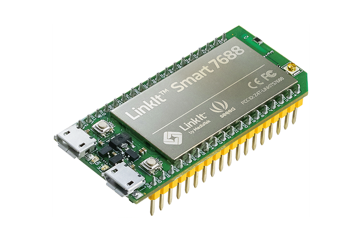 LinkIt Smart 7688 is one of the most highly integrated and compact hardware development boards available for IoT prototyping. The MPU is powered by MediaTek’s MT7688AN SOC that supports the OpenWrt Linux distribution.