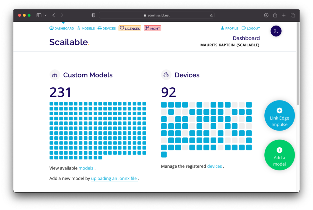 On the other hand, you can integrate the Scailable platform directly into your CI/CD pipelines through platform API or create your own AI model management interface on top of the Scailable platform.