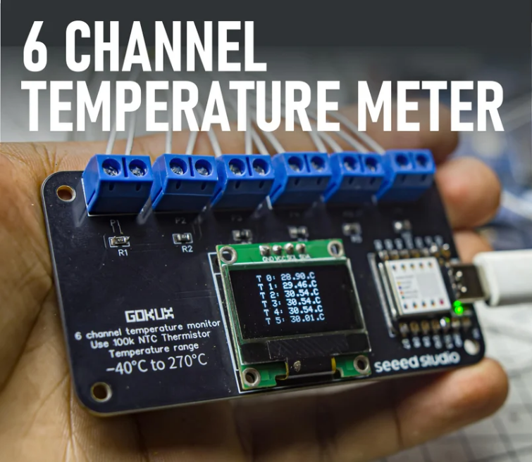 Designed as a cost-effective thermal camera alternative, this monitor uses NTC thermistors and an OLED to display temperatures from six different points—perfect for labs or experimental setups. Find the full build guide here.