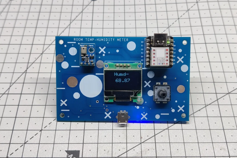 A room temperature and humidity meter that measures current room temperature and humidity and displays the readings on an SSD1306 OLED Screen. AHT10 is being used here to get the Temperature and humidity data, and the whole setup is driven by an XIAO SAMD21. This whole meter is powered through the onboard 18650 lithium Cell through a power management IC Setup that boosts the 3.7V of the lithium Cell to 5V for the MCU, display, and sensor to work. Check out the full project here.
