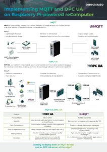 Explore MQTT and OPC UA with reComputer R1000, our Raspberry Pi-based AIoT device. Discover key features and differences in our flyer for insights into these two protocols. Please note that the details are limited for clarity. Find out more here.