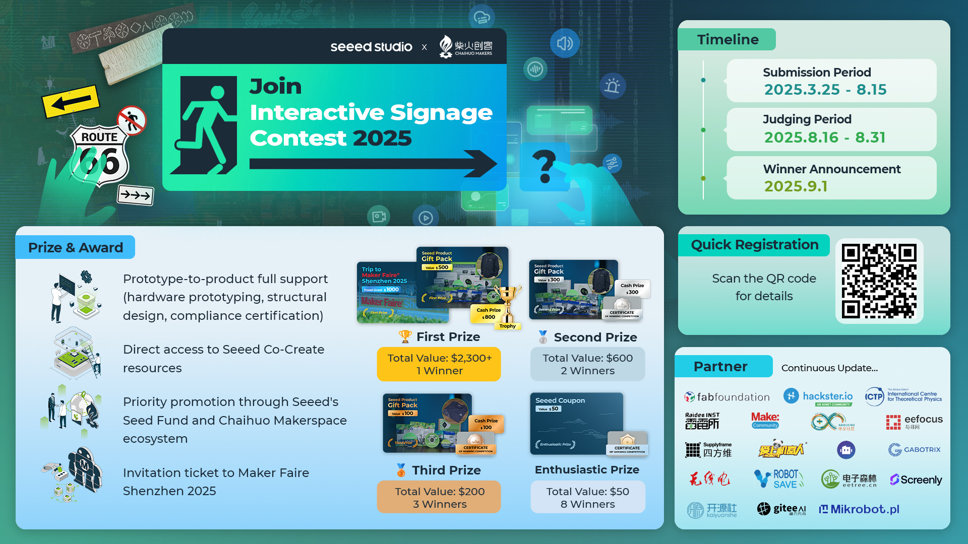 The Seeed Interactive Signage Contest is open until August 15, 2025. If you’re designing something that informs, delights, or empowers—we want to see it.