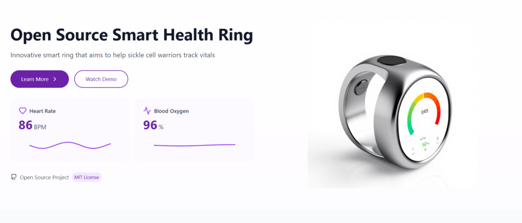 This prototype ring continuously tracks heart rate and blood oxygen levels for sickle cell patients using the MAX30105 sensor and XIAO ESP32C3. It streams real-time data via WebSocket to a web dashboard, with options for PDF reporting. The GitHub repository includes firmware, server code, and setup guides, with planned features like offline mode and mobile app. You can find the complete project details on GitHub.