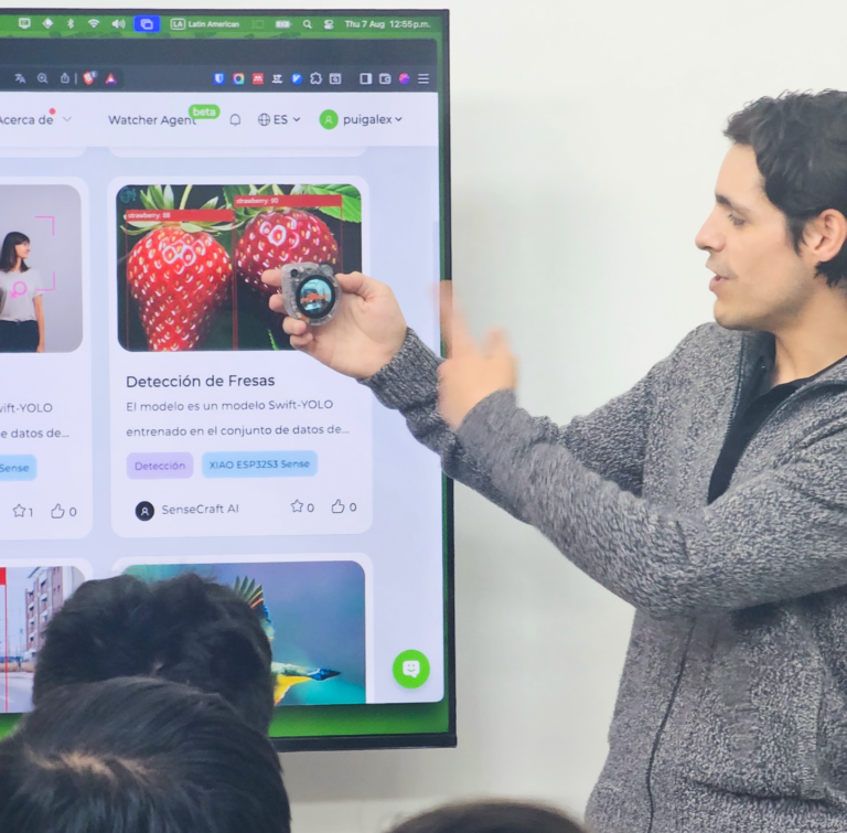 - Model Training in SenseCraft AI: Once the images where captured (each participant decided what they wanted to detect) we trained models straight to the XIAO using SenseCraft AI, showing people that to make your first project you can rely on good tools that make all this process easier. I took the time to explain about how convolutional neural networks (CNN) work and what needs to be done in order to optimize this models to work inside a microcontroller which has memory, processing and energy limitations.
