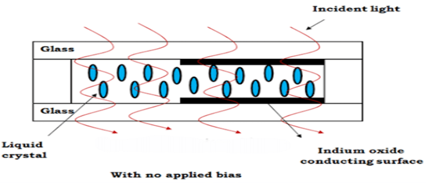 When no voltage is applied, the molecules remain naturally aligned and let light pass through evenly. They only react when they get exposed to voltage and display the bright and dark visions.