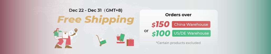 | Christmas Festivities | Dec 22 – Dec 31 | 1. 5% Off Many Products 2. Tiered Spend-&-Save Coupons 3. Free Shipping | 1.Coupons: Spend $199, Save $25: Use coupon code XMAS25Spend $499, Save $75: Use coupon code XMAS75Spend $999, Save $150: Use coupon code XMAS1502.Free Shipping CN Warehouse: Orders over $150 US & DE Warehouse: Orders over $100 |