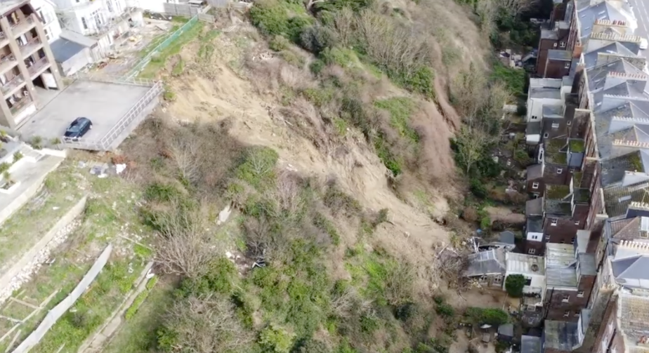 On the south coast of England, a residential community sits both above and below a steep coastal cliff. In 2024, following a period of heavy rainfall, part of the cliff collapsed. Material from beneath properties at the top slid into the back gardens of homes below, causing physical damage and leaving residents living with ongoing uncertainty and fear of further collapse.