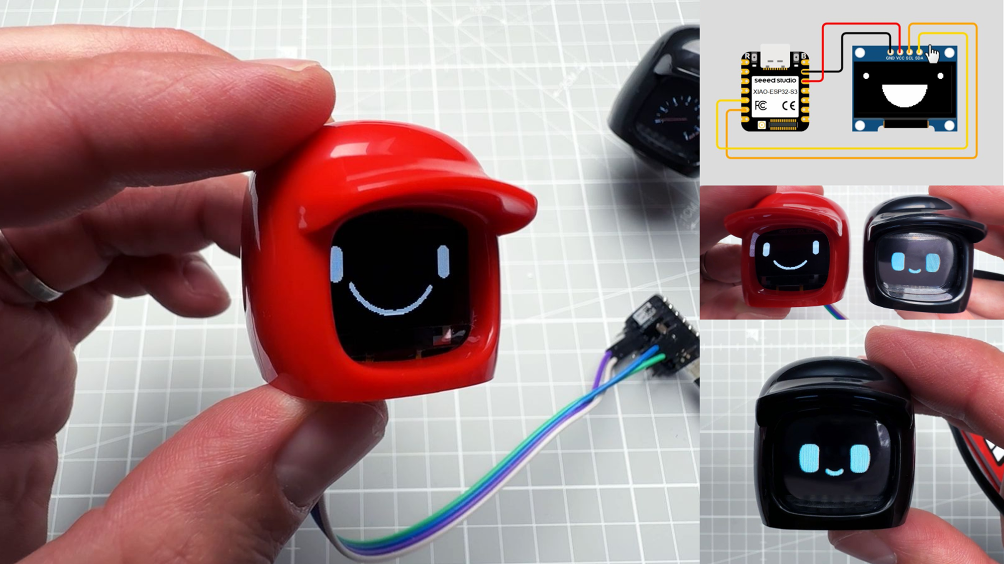 A desktop robot powered by XIAO ESP32-C3, with rear-mounted sensors monitoring temperature, humidity, and air quality—expressing room comfort through emotions. If it looks gloomy, it’s time to check the data.