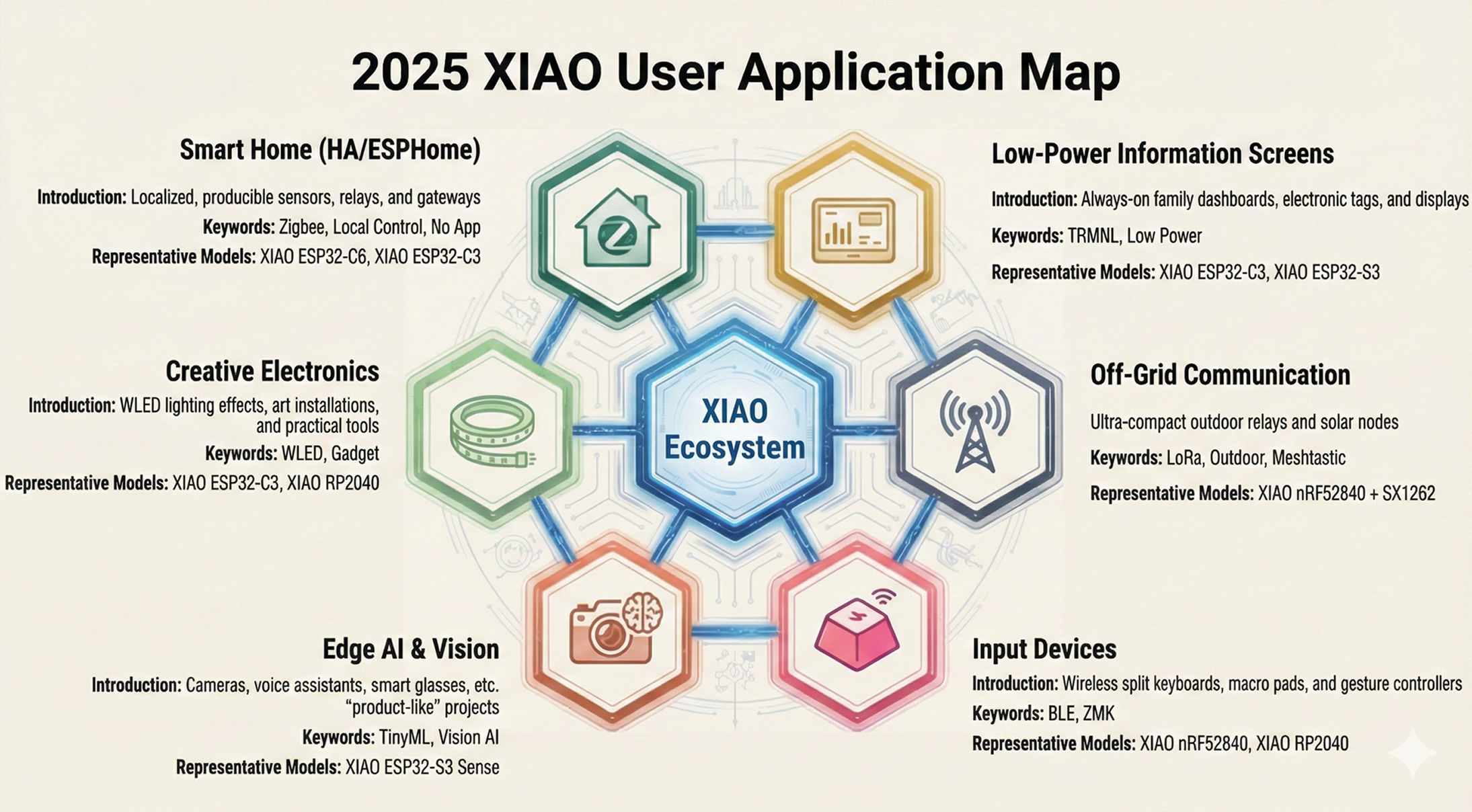 Based on community projects, tutorials, and real-world deployments, Seeed Studio XIAO was most commonly used in the following application areas in 2025. These categories reflect how developers moved from experiments toward practical, product-like builds.