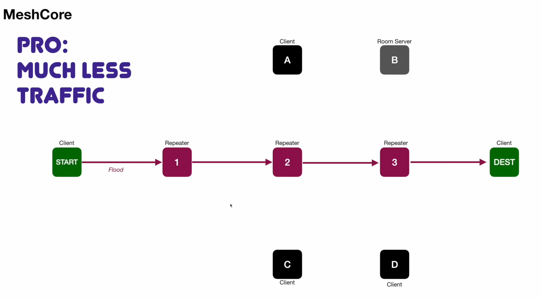 Instead of broadcasting to everyone, MeshCore calculates the most efficient path through the network and sends the message only along that specific route. To achieve this, MeshCore networks require a hierarchy of device roles: