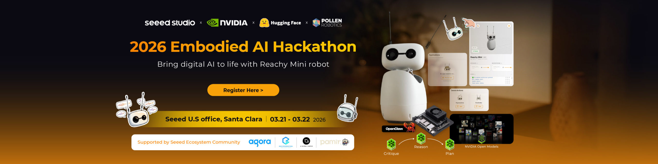 At Seeed Studio, we’re diving into the latest open-source robotics projects, focusing on Physical AI to bring more engaging hackathons worldwide. Here, you’ll gain hands-on experience in hardware assembly, data collection, NVIDIA Isaac Sim, model training, and edge deployment for real-time processing and inference. Starting with the Hugging Face LeRobotplatform, we’ve worked alongside developers throughout the journey, sharing ideas and building connections along the way.