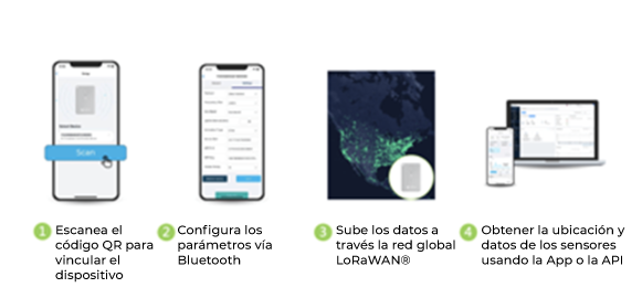 Obten la ubicación en 4 sencillos pasos. La App SenseCAP Mate y los servicios de la nube están diseñados para una configuración rápida y la gestión de datos y dispositivos.